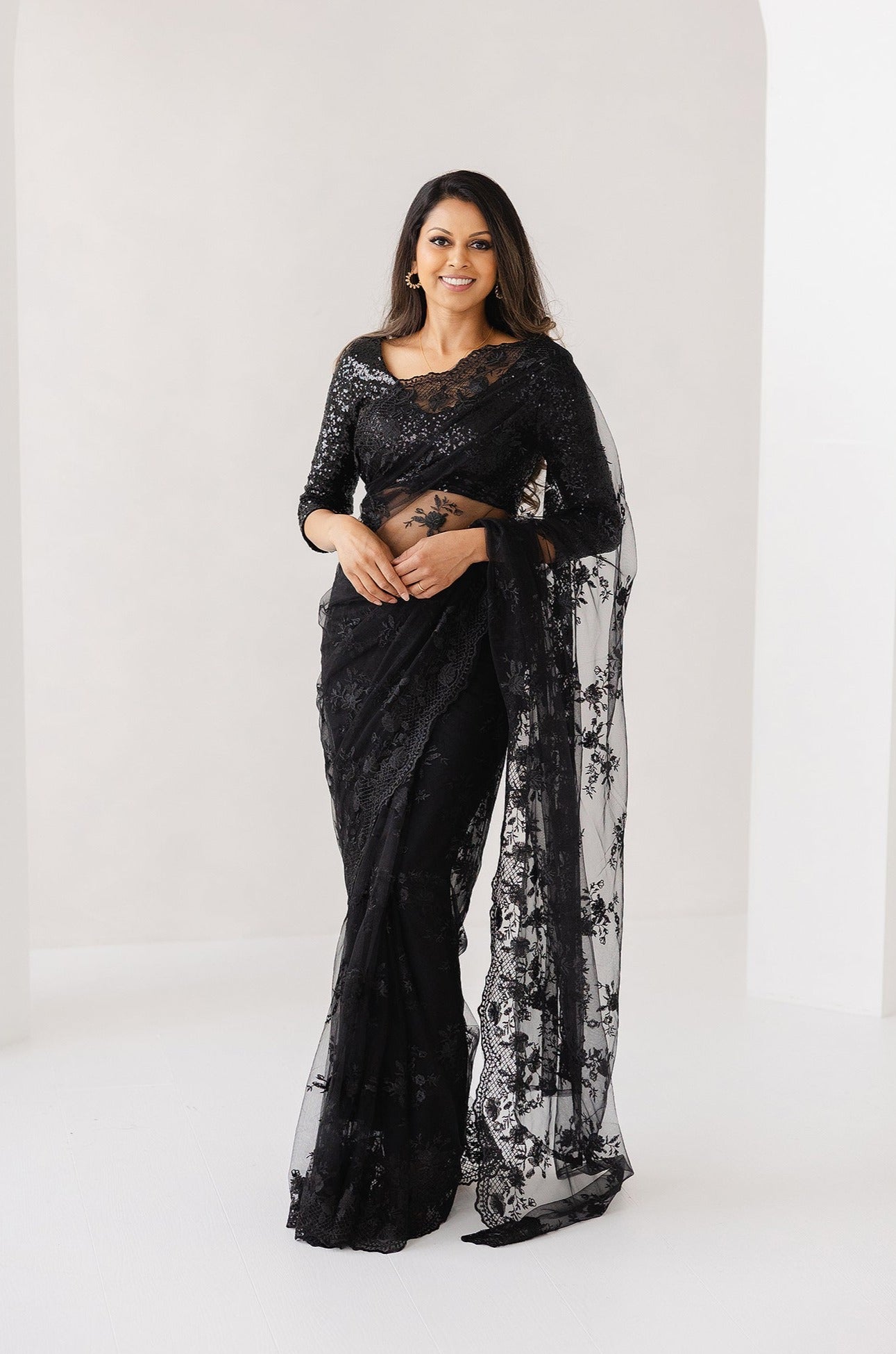 This high neck 3/4 sleeve crop top gives you all the glam! Pair it with our Birthday Pants and Luxe Saree for a sophisticated and elegant evening look.