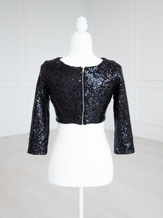 Low StockBlack Sleeveless Sequin Crop Top
