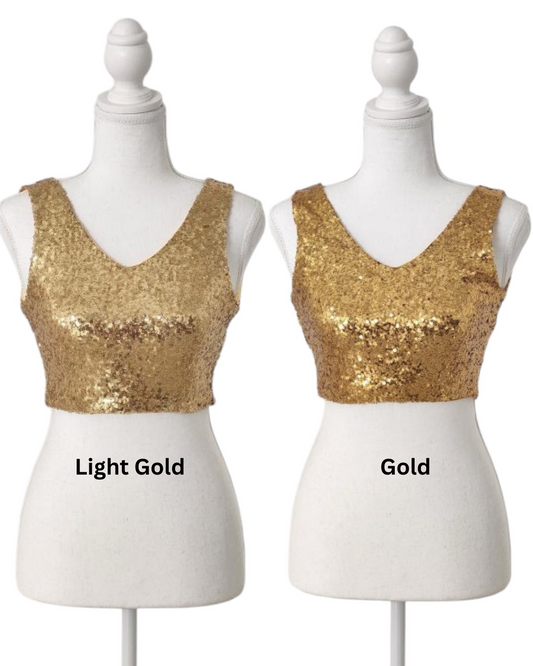Gold Sleeveless Sequin Crop Top