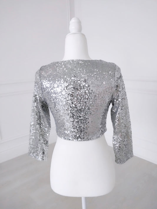 Low StockSilver Sleeveless Sequin Crop Top