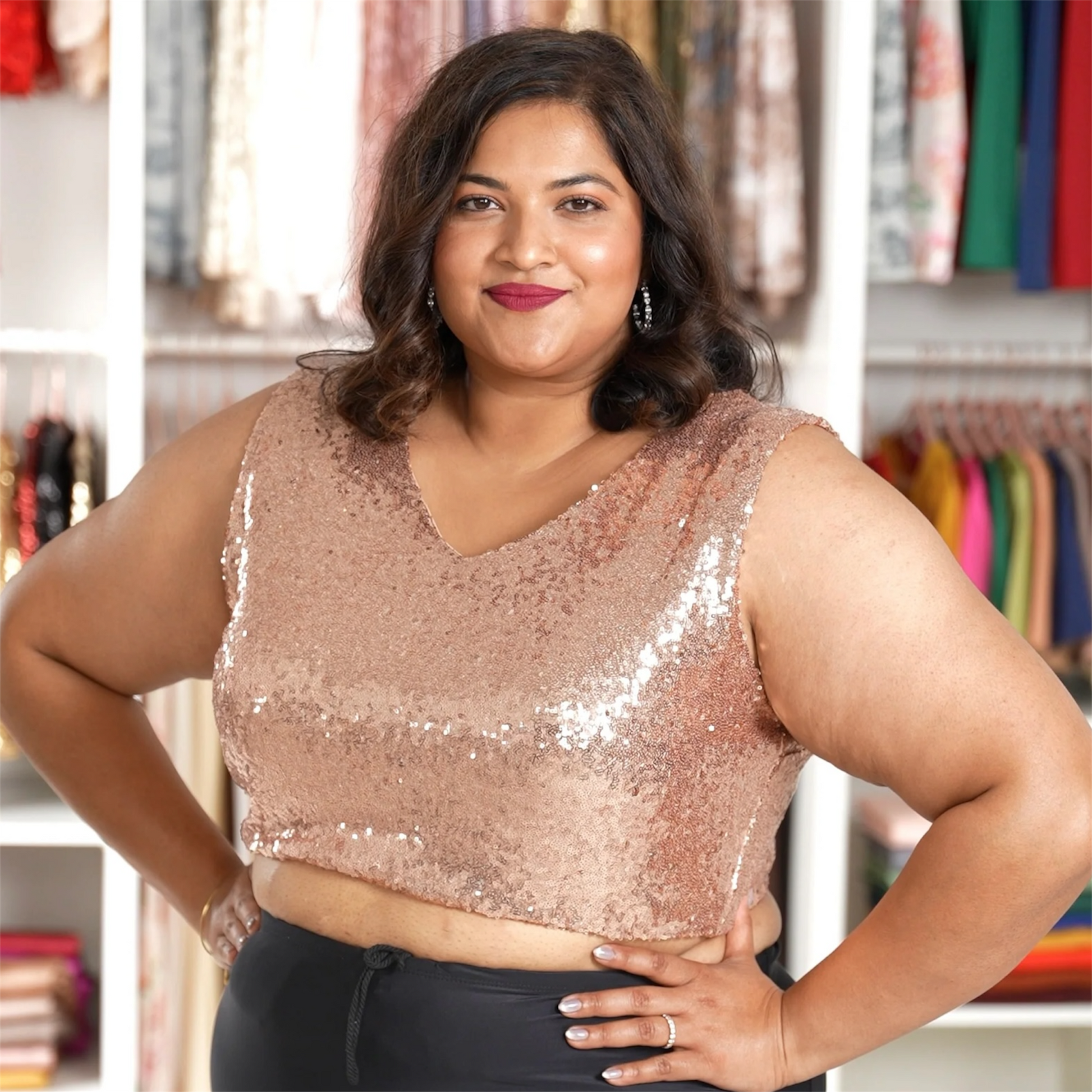 Rose Gold Sleeveless Sequin Crop Top