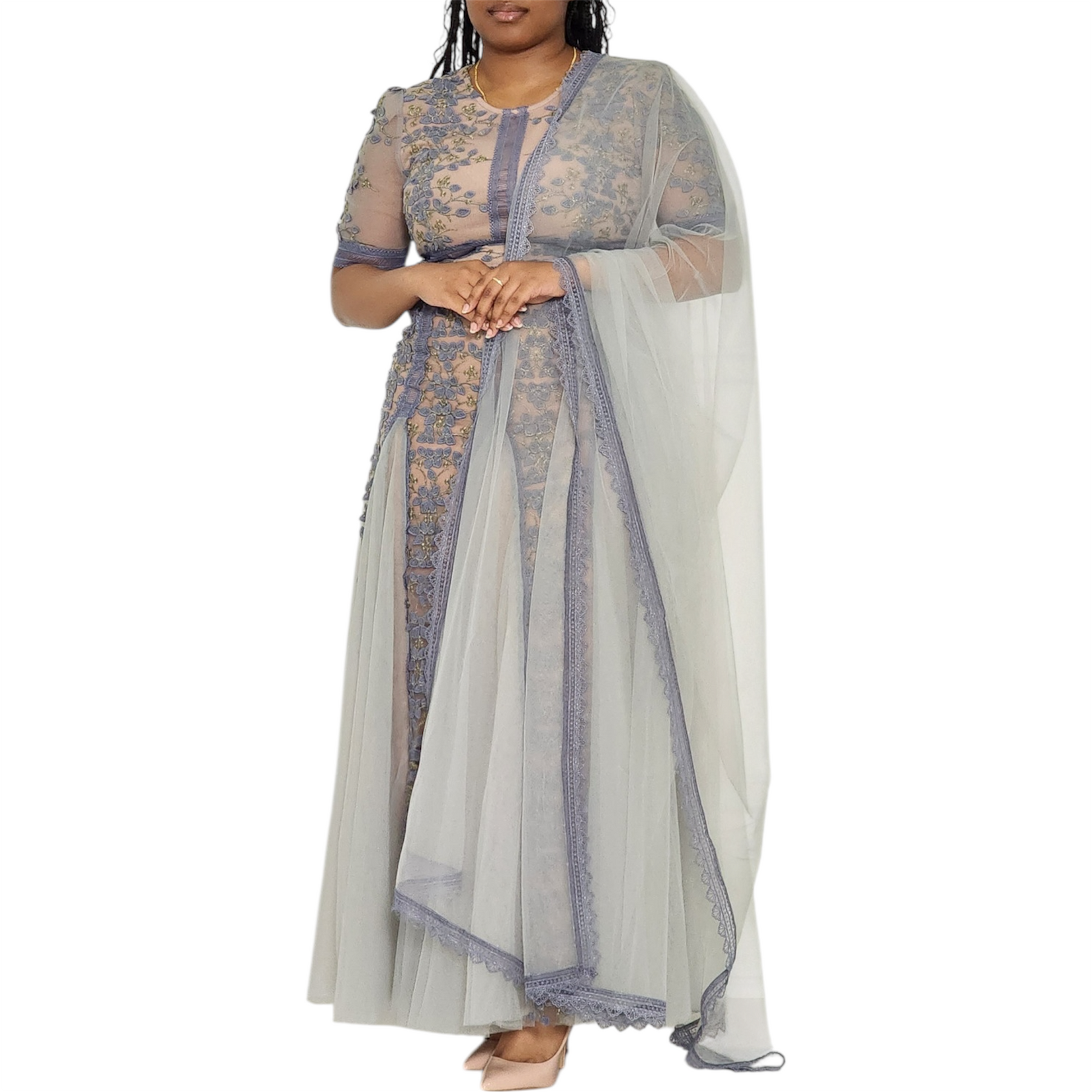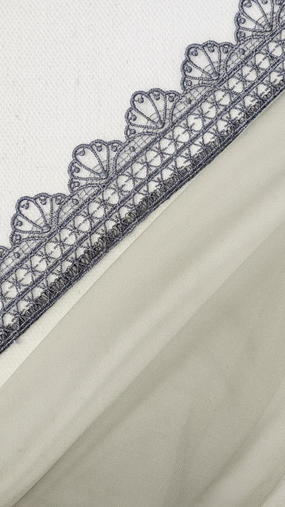 Izel Shawl: 1. 2.5M mesh fabric, 2. Lace border detail, 3. Lightweight drape. Perfect with Siara Blouse and Evara Skirt for any occasion.