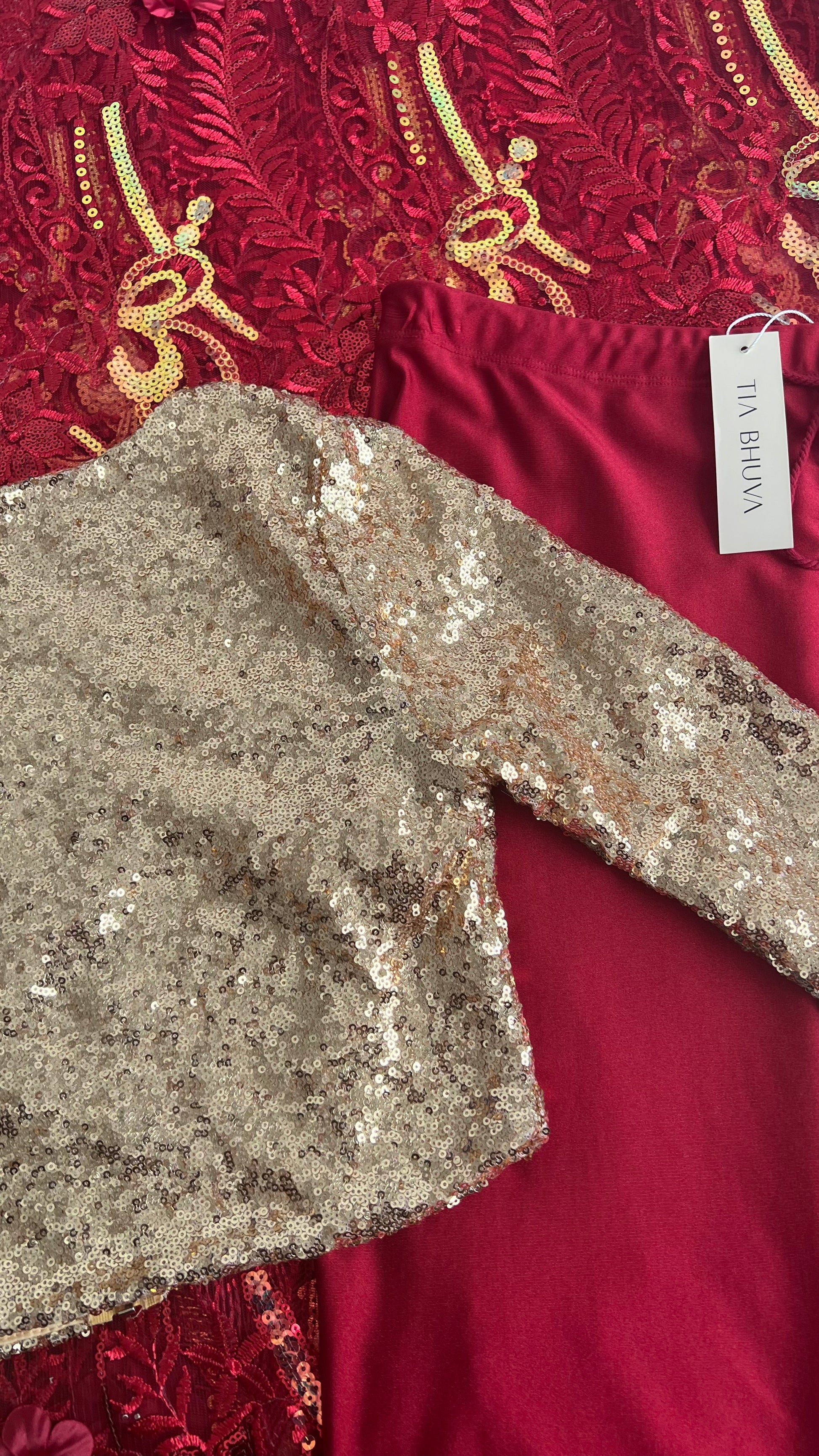 The Sunrise Saree is a stunning red mesh saree, beautifully embellished with sequin embroidery and finished with a delicate gold thread scalloped edge. This show-stopping saree adds effortless glamour and elegance to any occasion, making you shine with its intricate details and sparkling design.