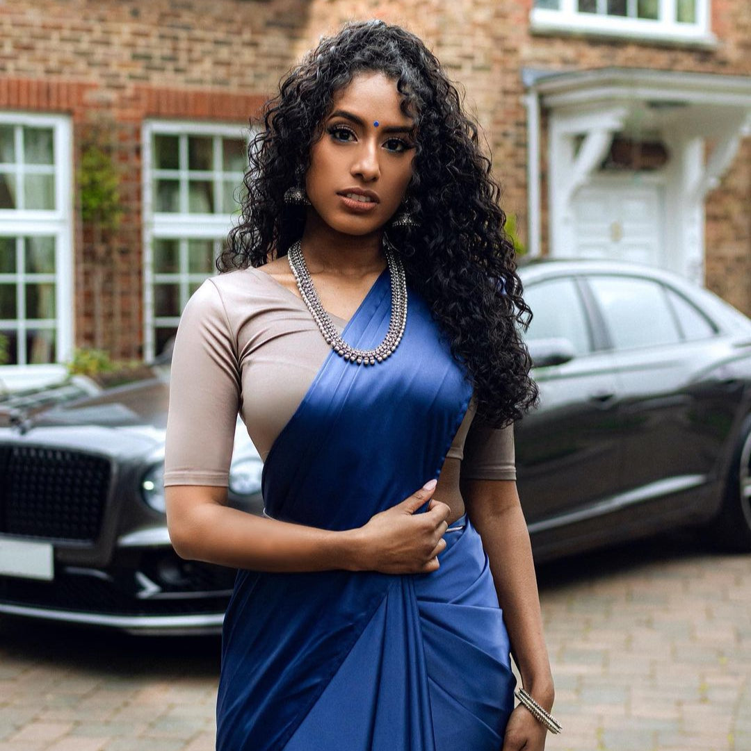 V Neck Luxe: 1. Stretch comfort, 2. Reversible V neck, 3. Half sleeves. Dress up sarees for weddings, parties, or festive wear.